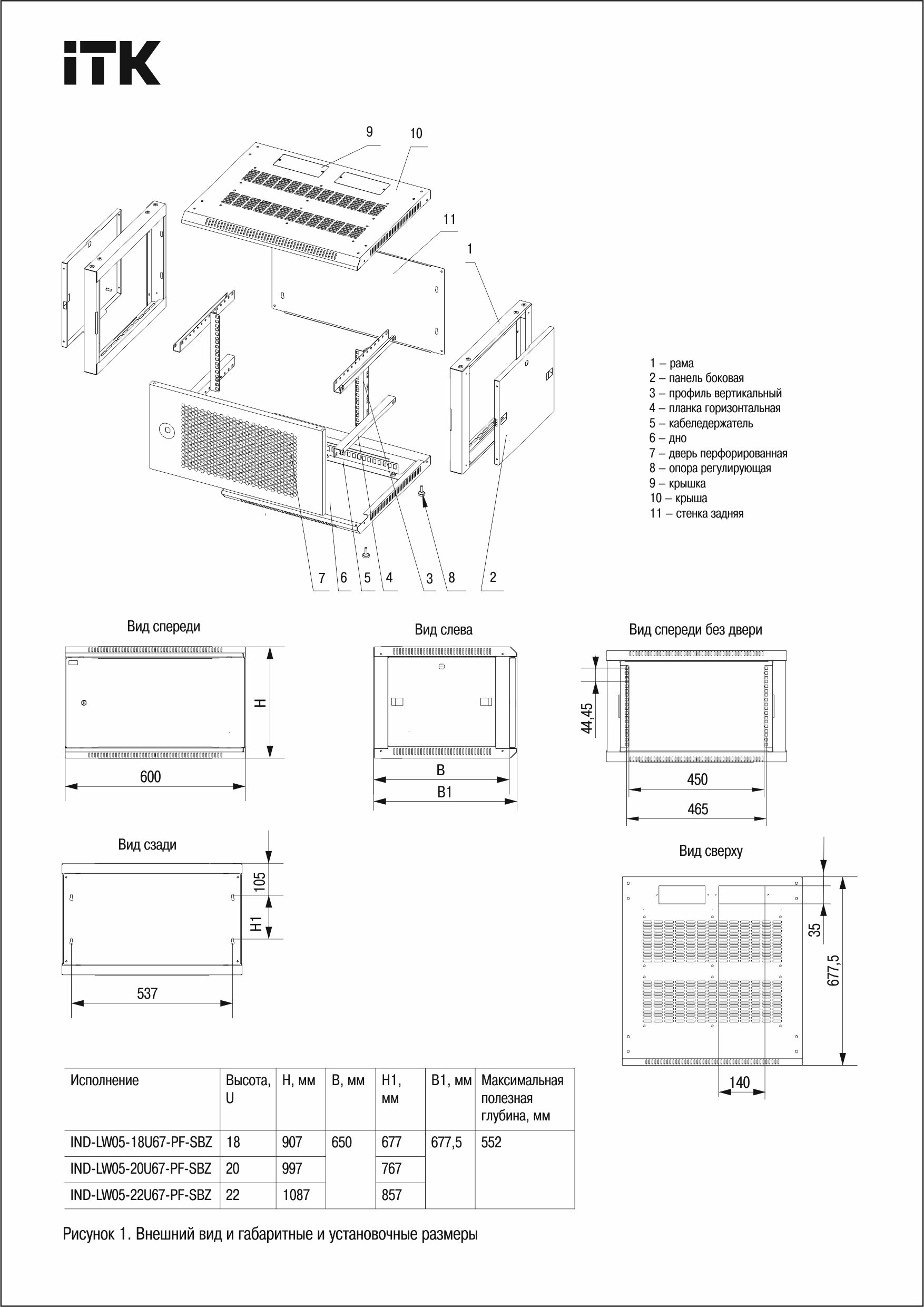 ITK LINEA W Шкаф 18U 600х650мм укомплектованный дверь перфорированная черный RAL9005
