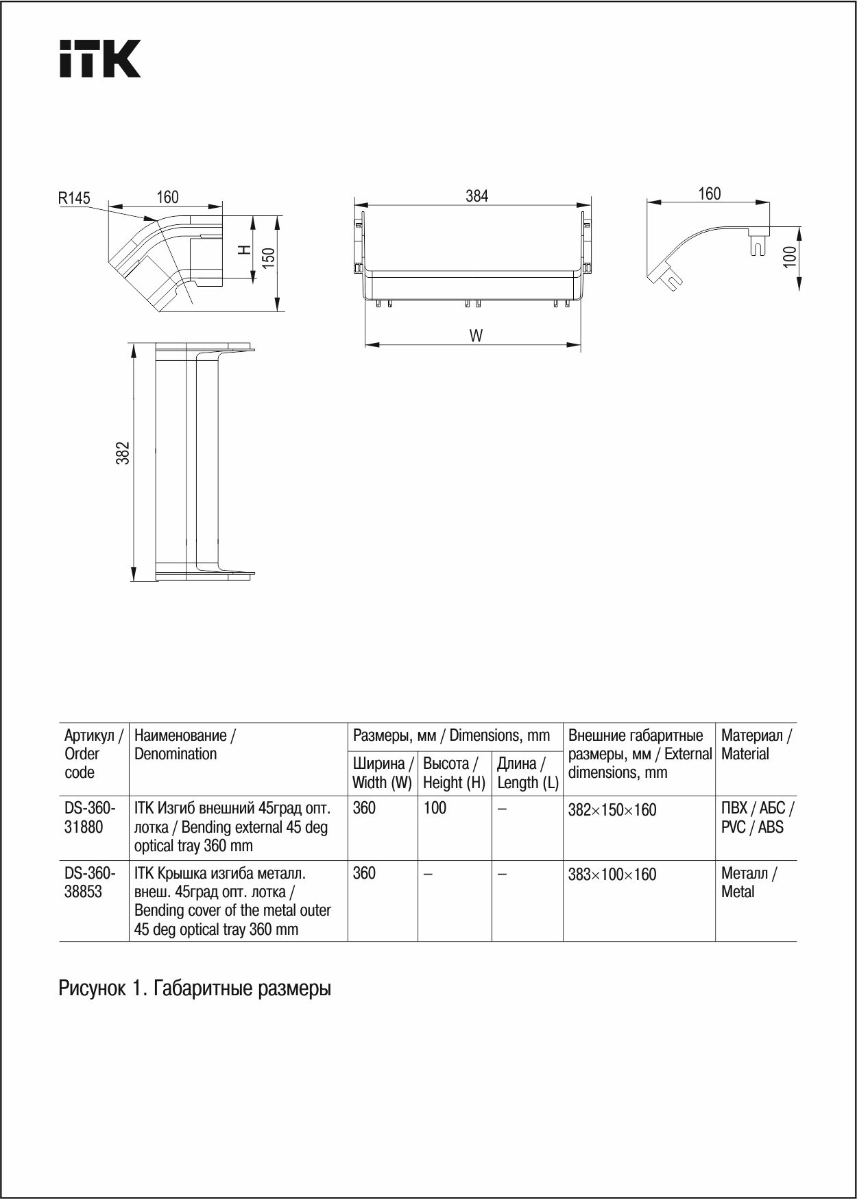 ITK Крышка изгиба внешнего металлическая 45град оптического лотка 360мм