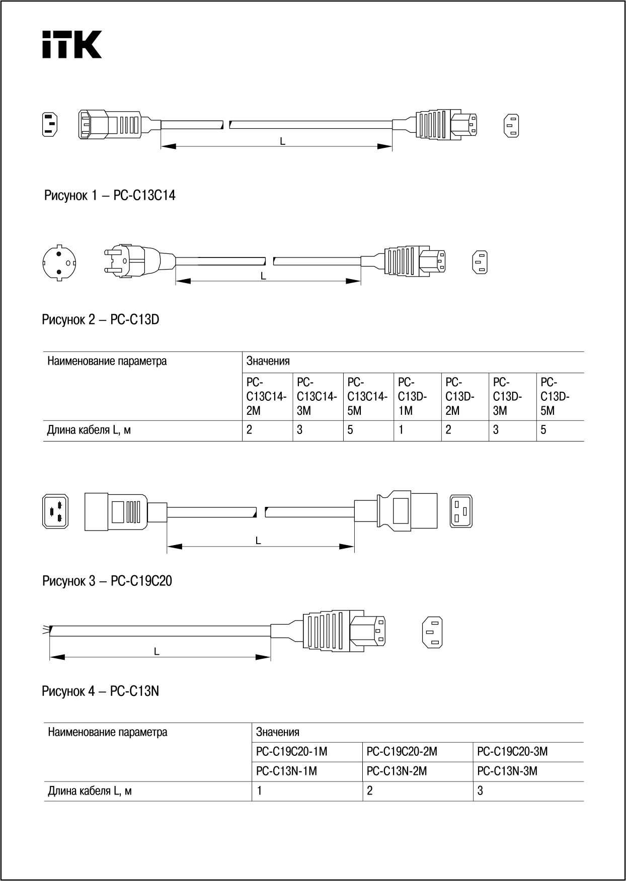 ITK Кабель электропитания PDU 3х1,5мм2 1м с разъёмами С19-C20