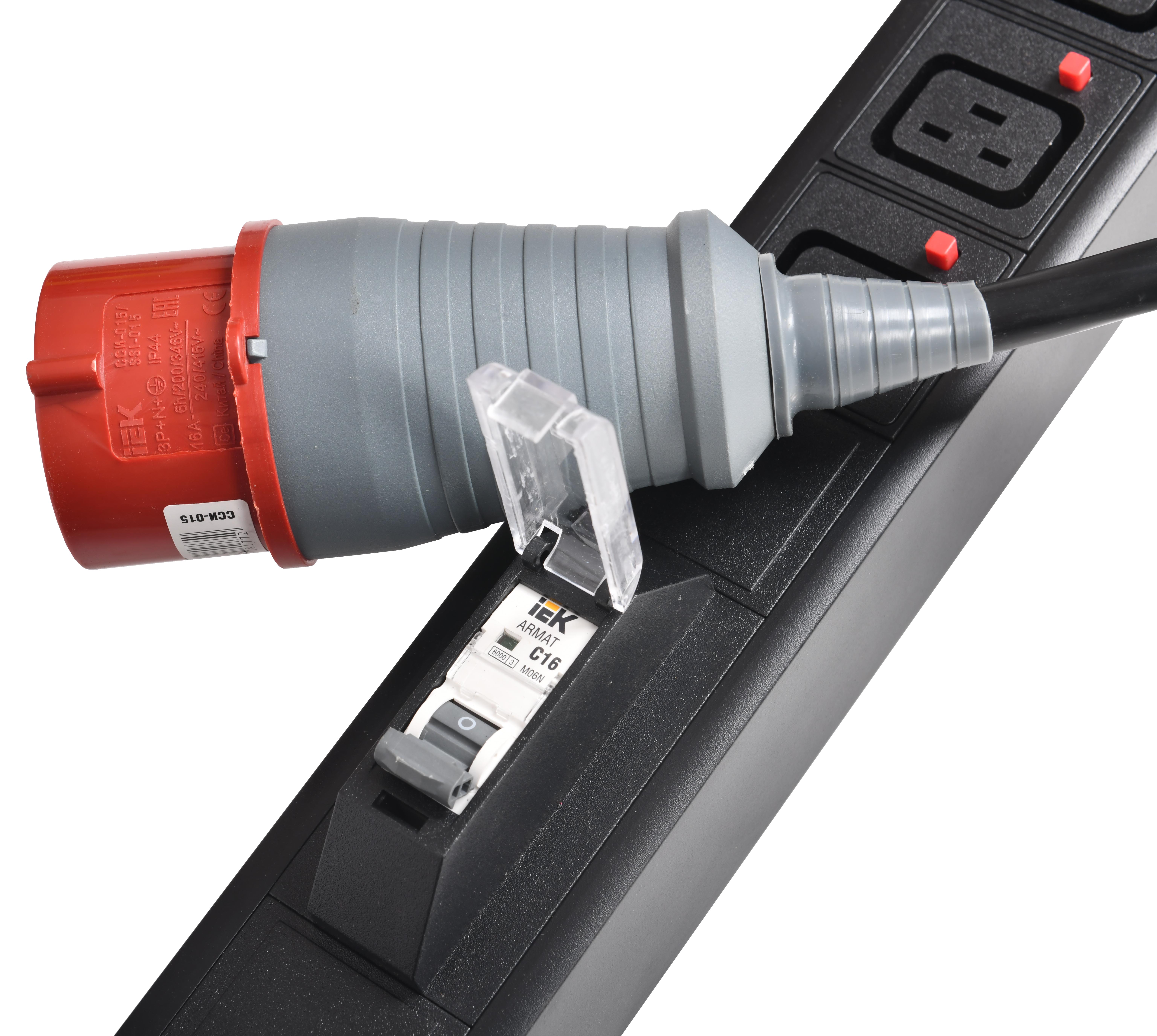 ITK BASE PDU вертикальный PV1114 24U 3 фазы 16А 6 розеток SCHUKO (немецкий стандарт) + 12 розеток C13 с клеммной колодкой и кабелем 3м вилка IEC60309 (промышленная)