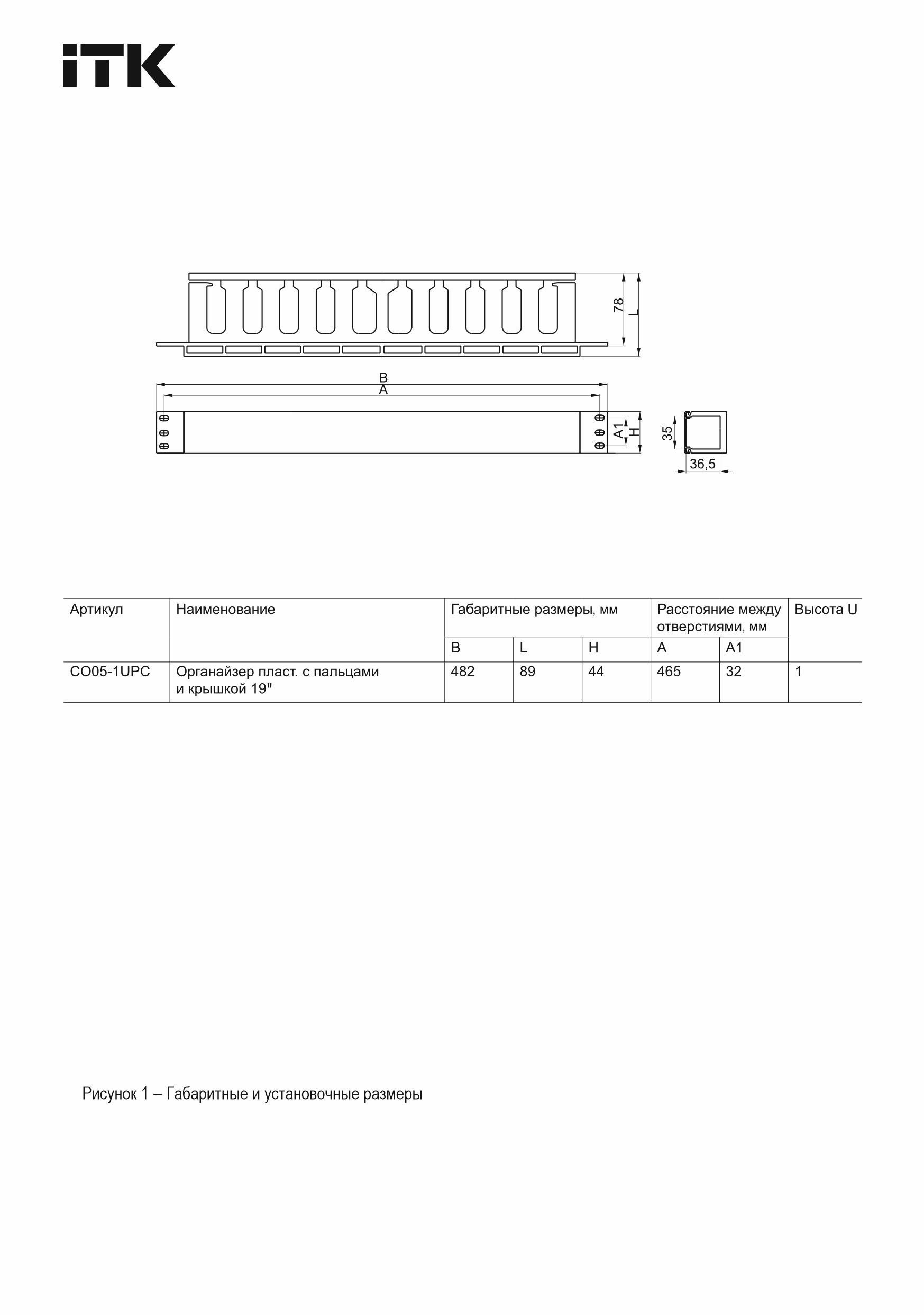 ITK Органайзер пластиковый с пальцами и крышкой 19" 1U черный