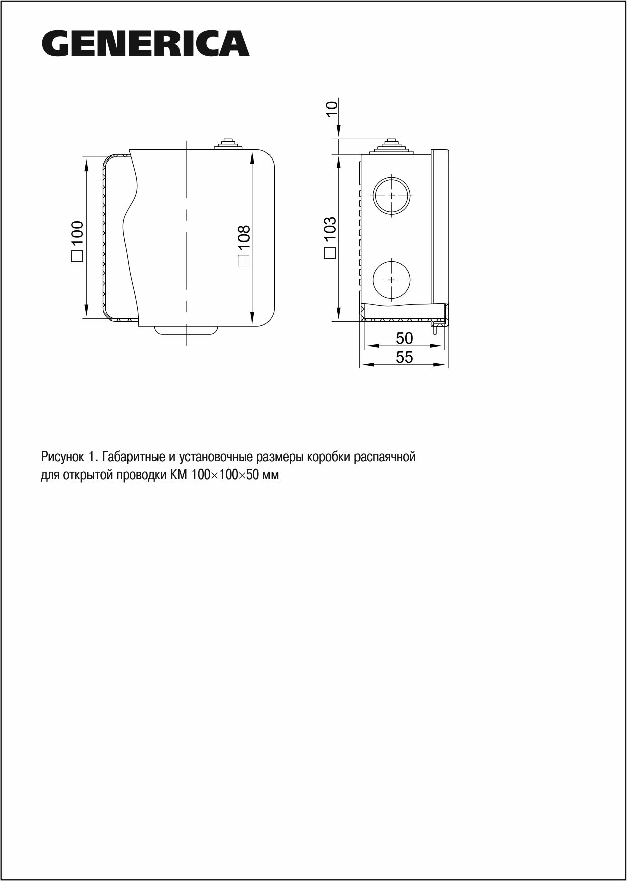 Коробка распаячная КМ для открытой проводки с откидной крышкой 100х100х50мм IP54 4 гермоввода (7035) GENERICA