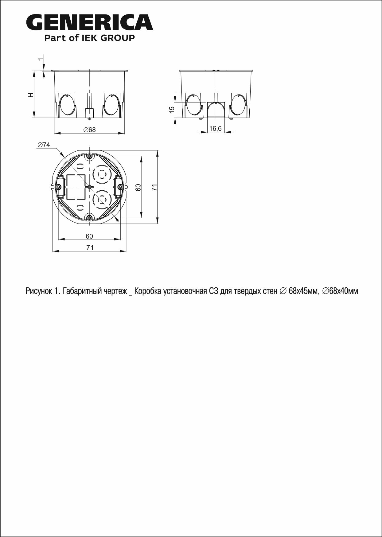 Коробка установочная СЗ для твердых стен D=68х45мм GENERICA