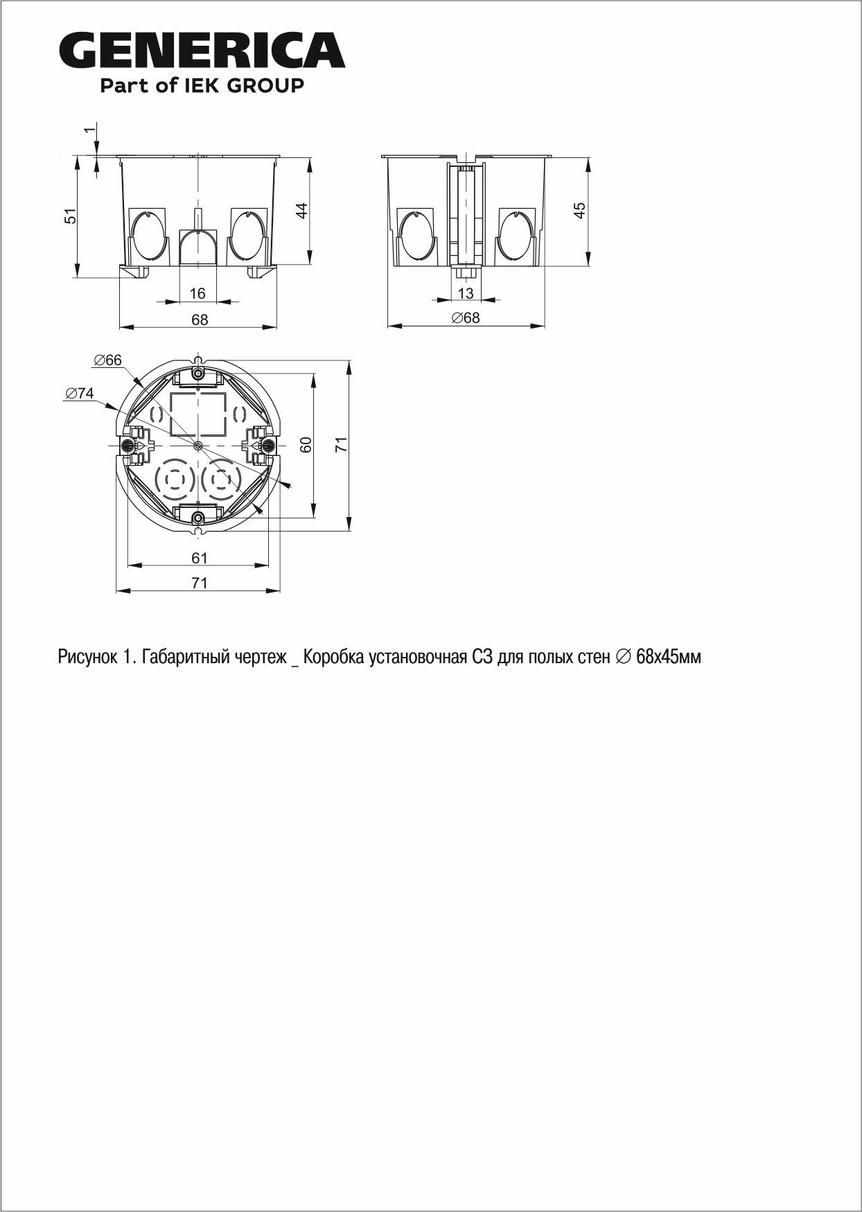 Коробка установочная СЗ для полых стен D=68х45мм (пластиковые лапки) GENERICA