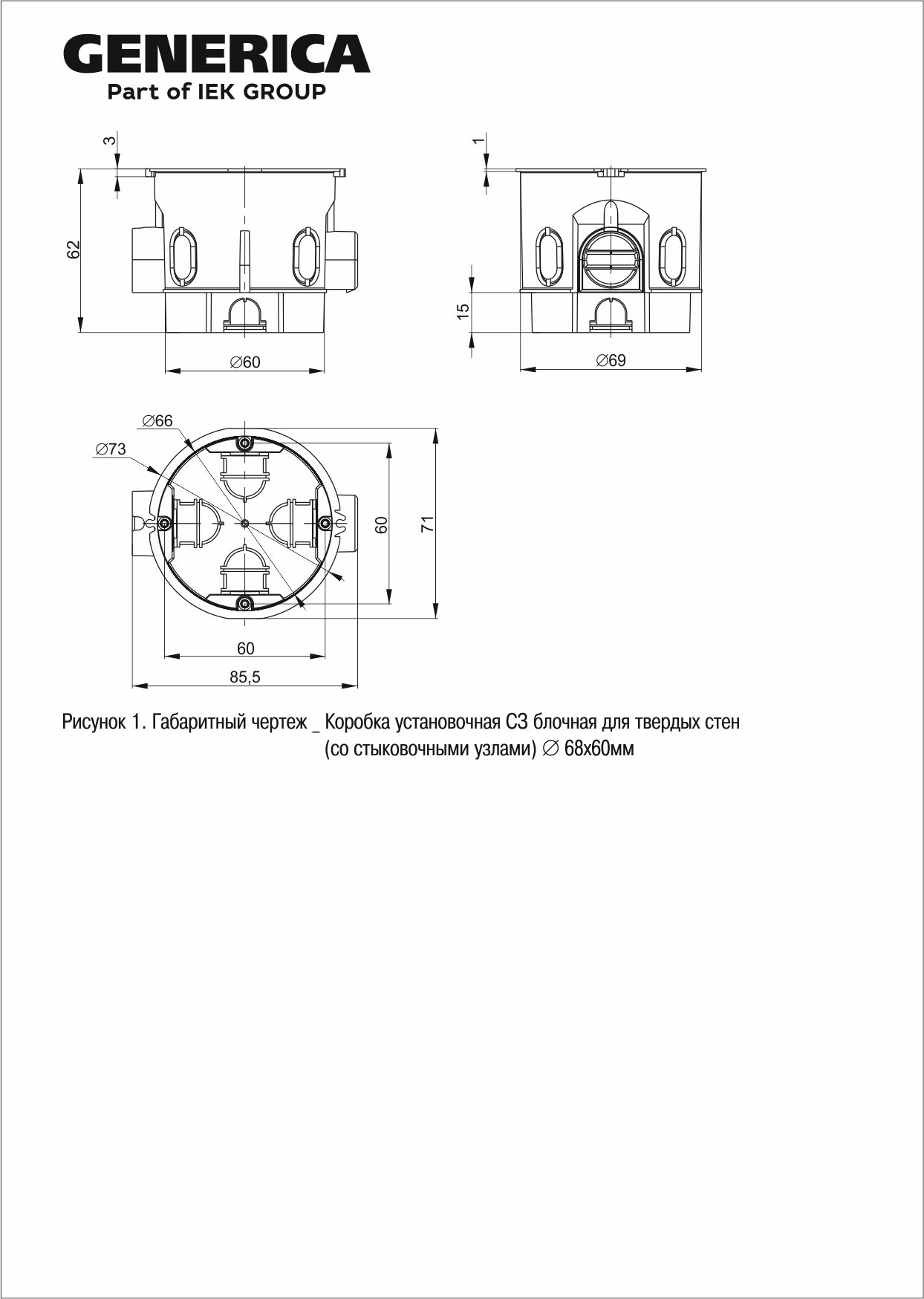 Коробка установочная СЗ блочная для твердых стен D=68х60мм (со стыковочными узлами) GENERICA