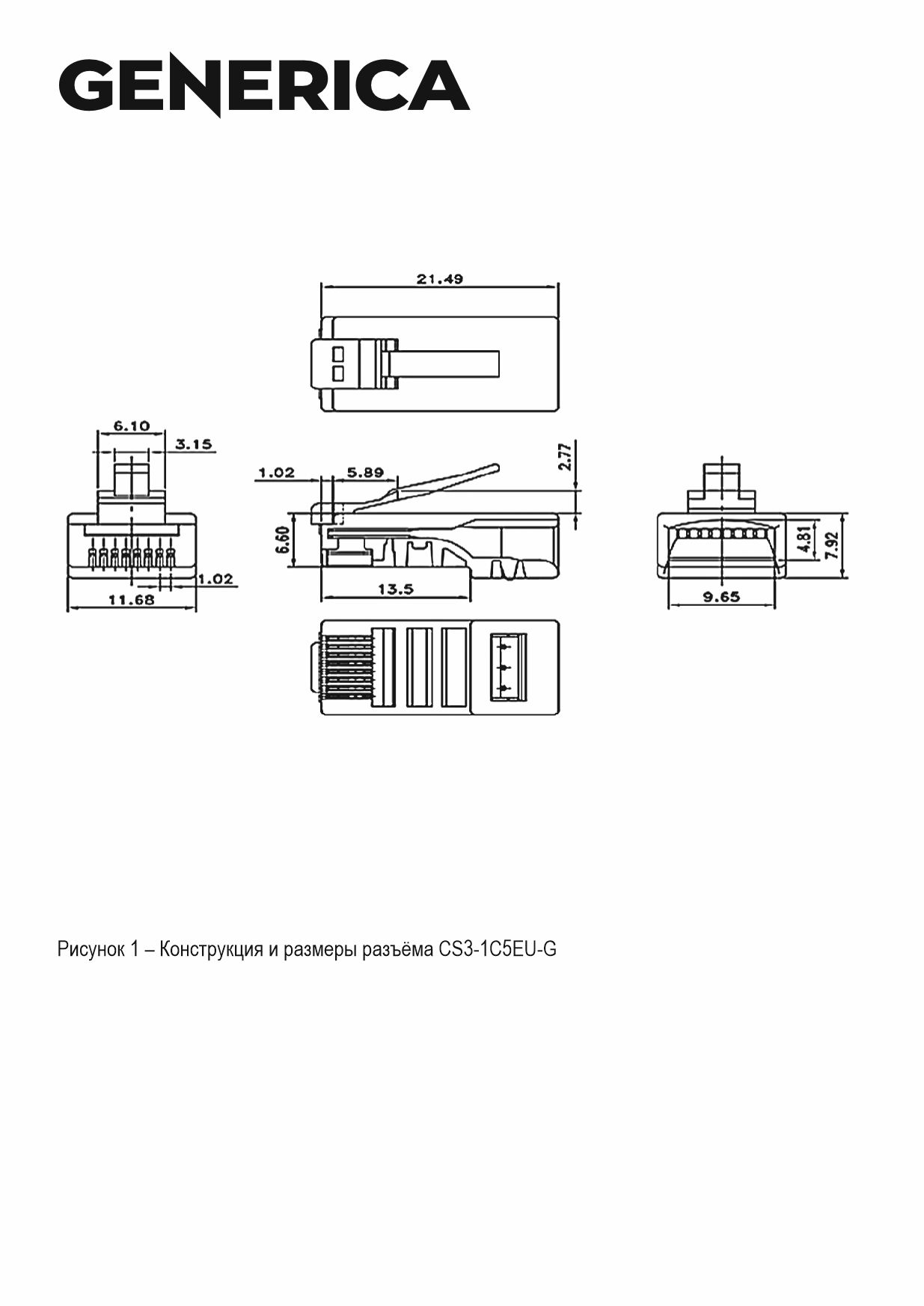 Разъём RJ-45 UTP для кабеля кат.5E GENERICA