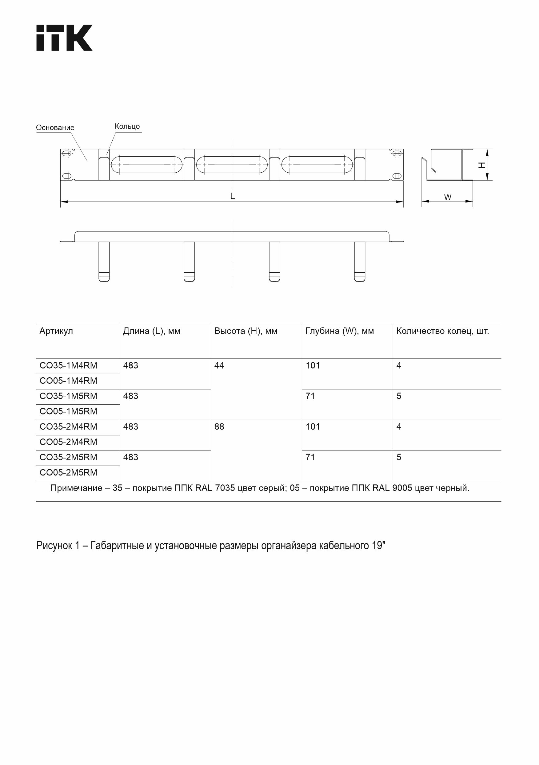 19" кабельные органайзеры ITK предназначены для горизонтальной организации кабеля и кабельных пучков в шкафах и стойках, для укладки кабелей в пространствах между патч-панелями и установленным активным оборудованием.