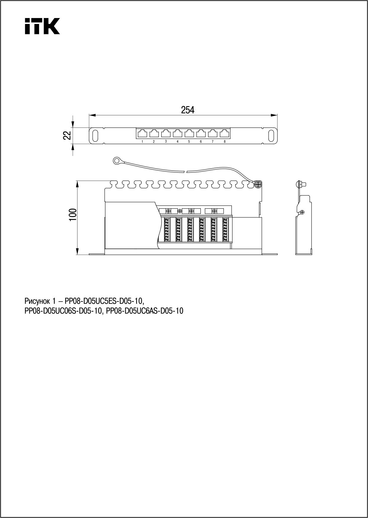 Патч-панели для монтажа в шкаф 10" (254мм) имеют отверстия с левой и правой стороны для крепления на профиль, производятся высотой 0,5 или 1 юнит. На передней стороне все патч-панели ITK имеют специальную площадку для дополнительной маркировки и цифровую нумерацию портов. На обратной стороне модули IDC имеют цветовую и цифровую нумерацию. Также для облегчения монтажа и укладки кабелей выпускаются модификации с кабельным органайзером.