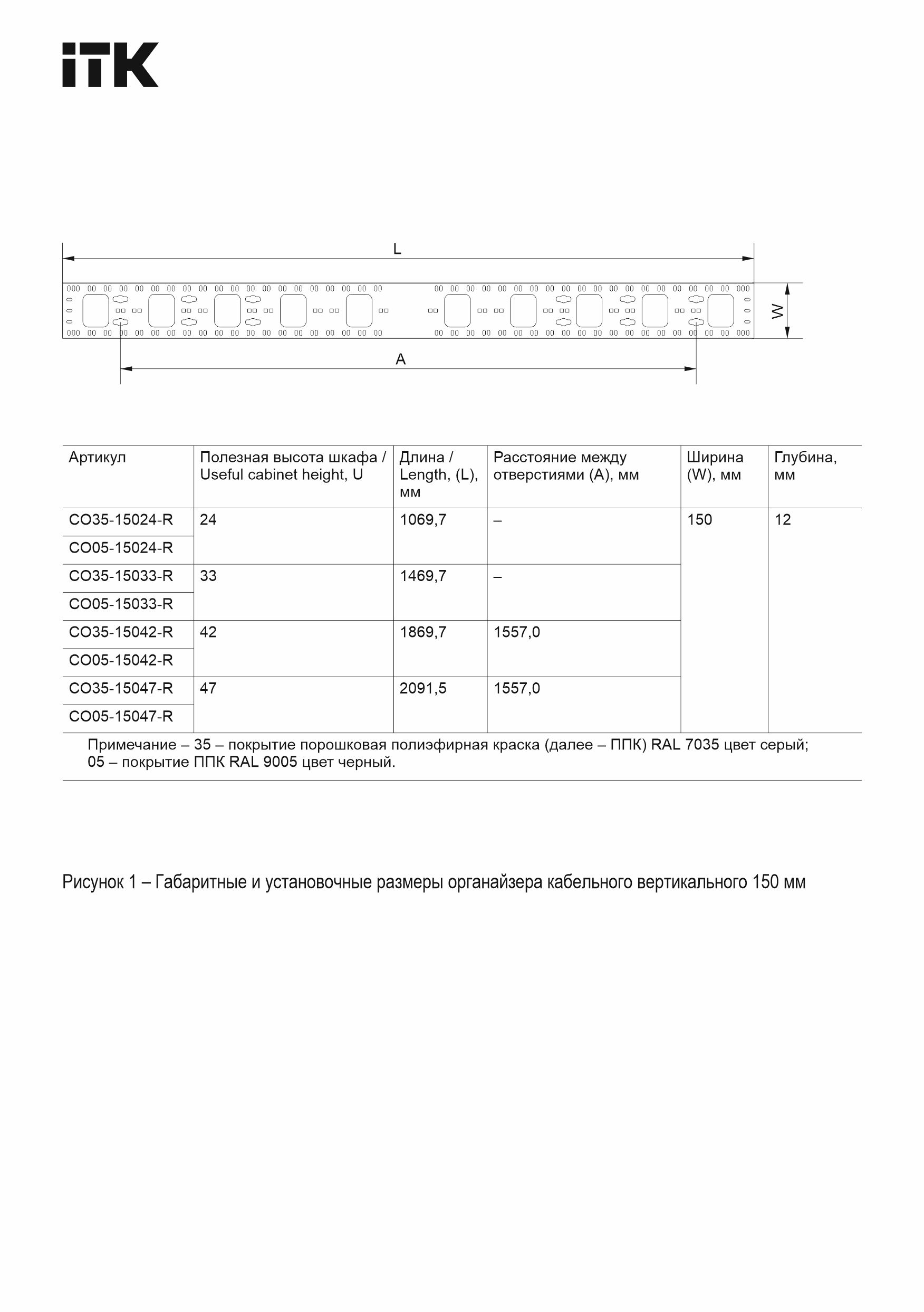 ITK Органайзер кабельный вертикальный 150х12мм 42U черный