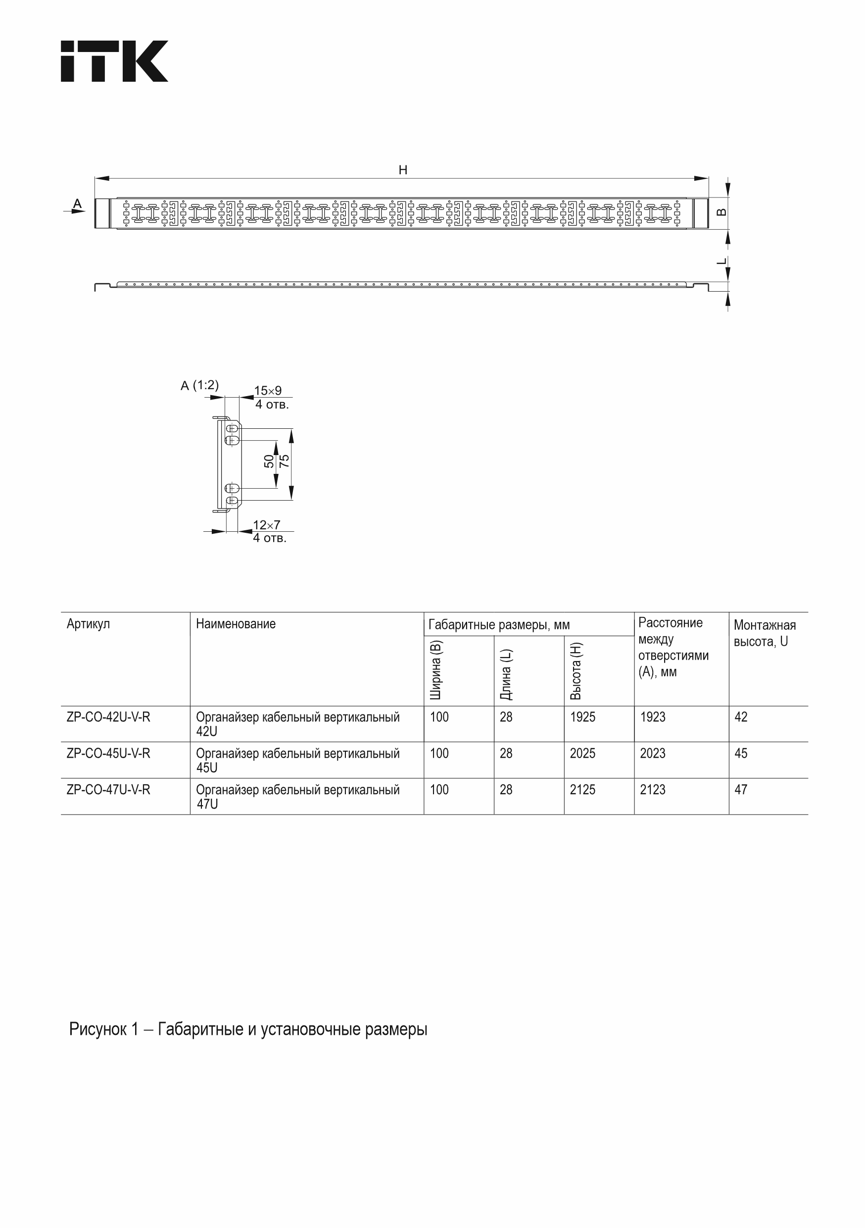 ITK by ZPAS Органайзер кабельный вертикальный 47U РФ
